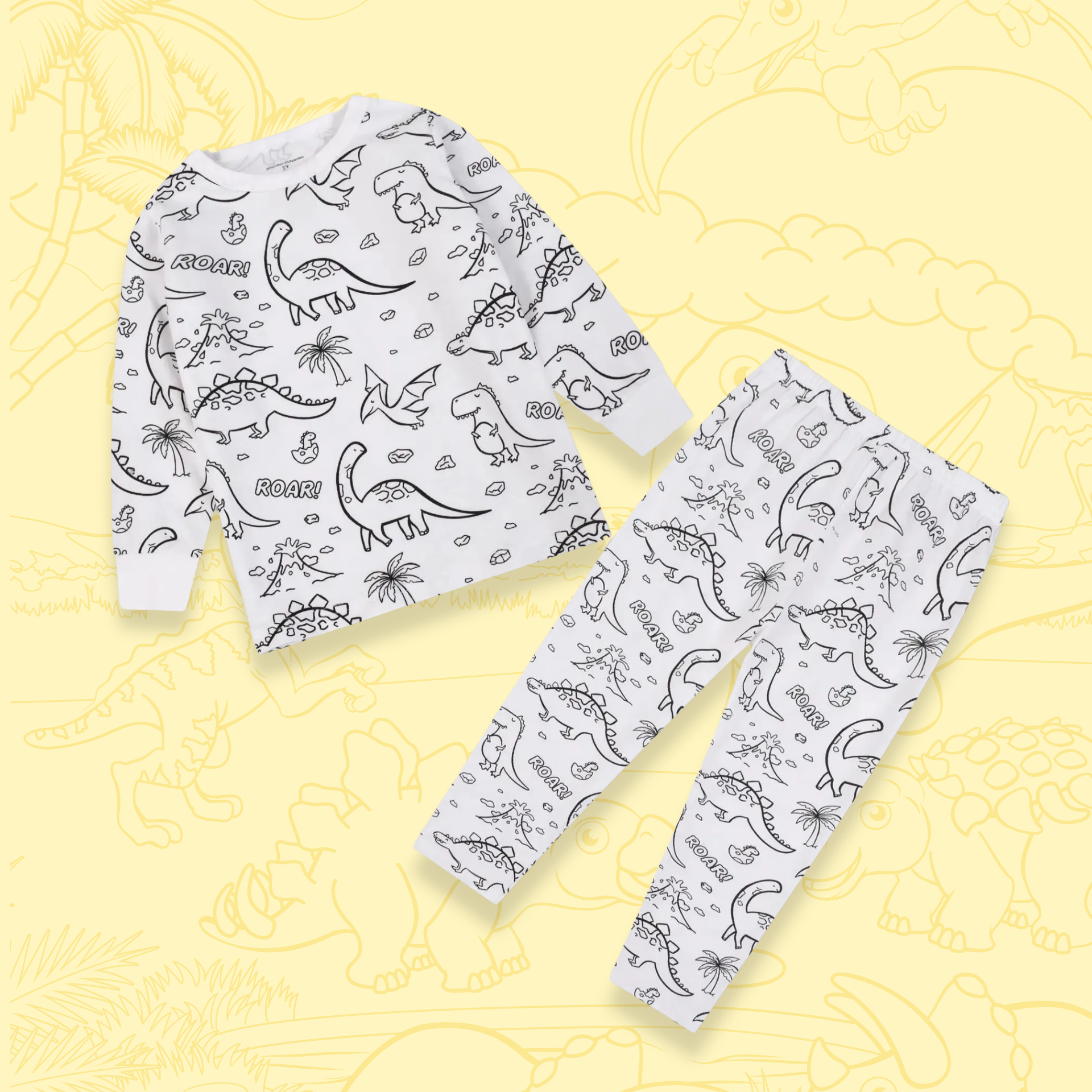 Each set comes 1 colorable pajama set (top + bottom), with a fun themed designs that's fully reusable and machine washable for endless fun!
